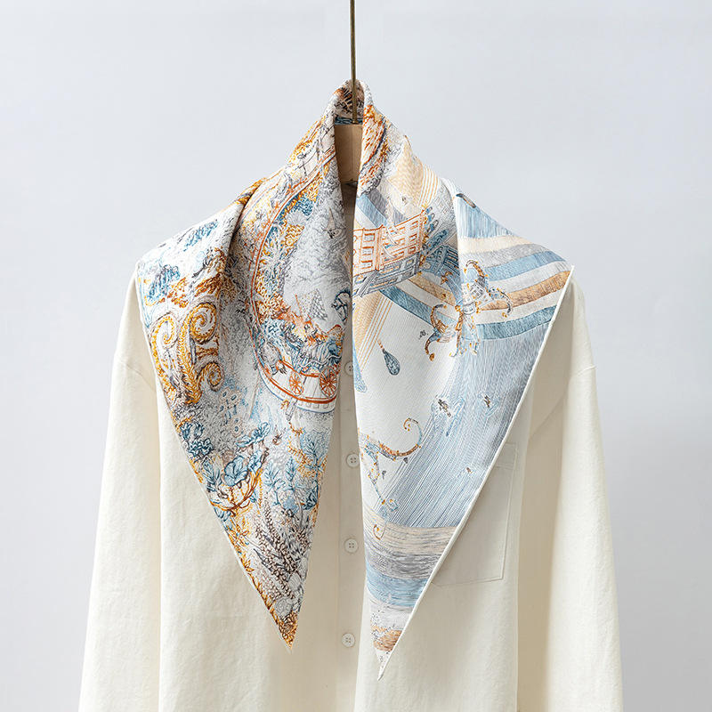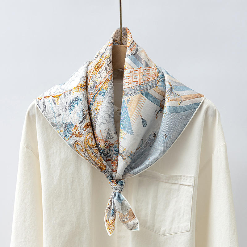 Haute qualité printemps lourd 65*65cm sergé soie carré écharpe en gros tropical léopard à pois Plaid rayé foulard en soie pour les femmes