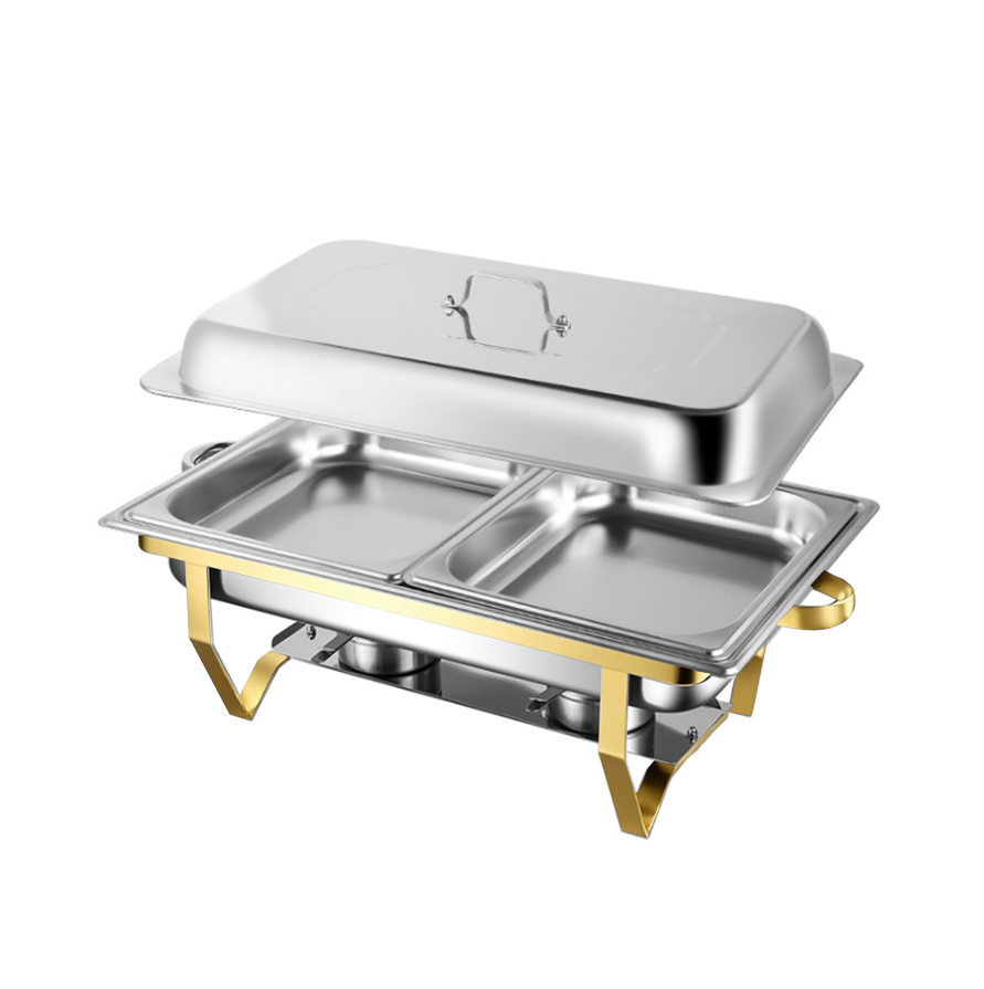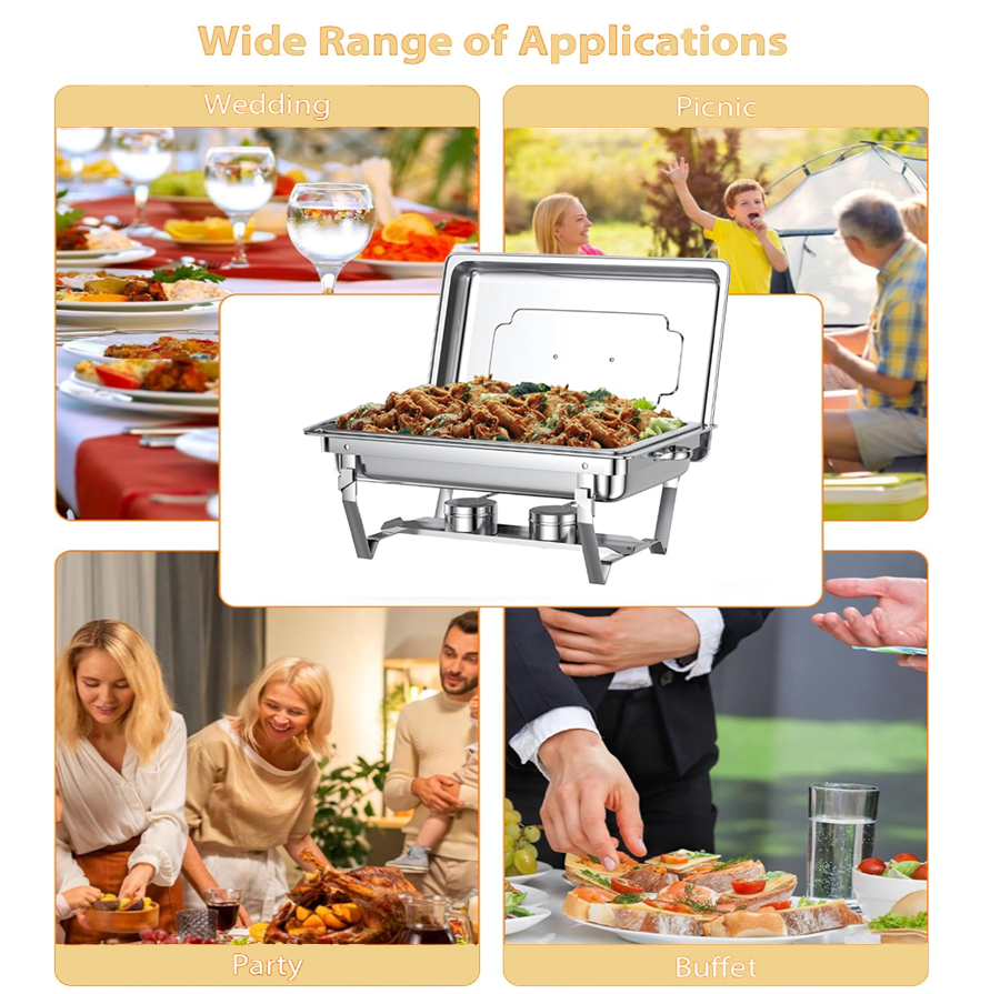 Ensemble de réchauds à buffet en acier inoxydable de haute qualité, 11 L, rectangulaire, alimenté au combustible, 4 pièces, chauffe-plats au gaz, design à bord roulé