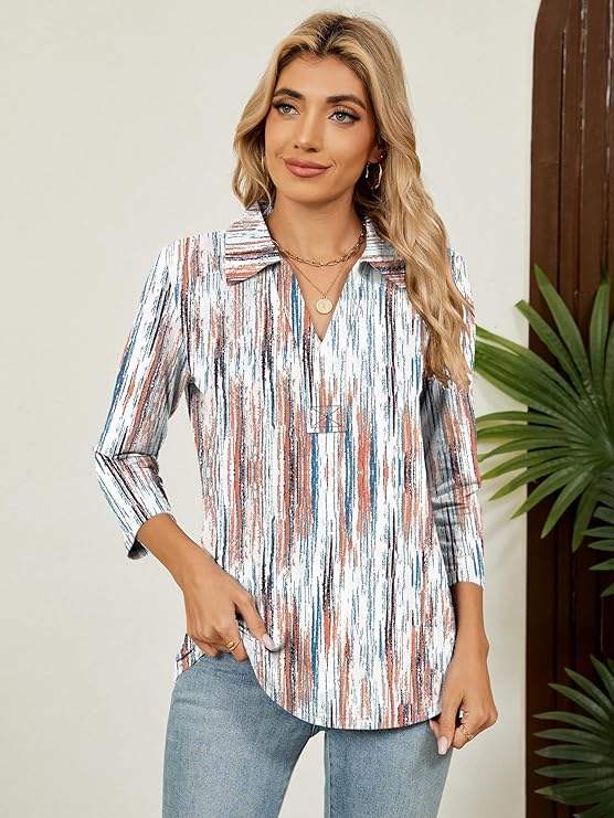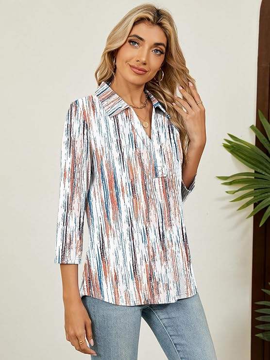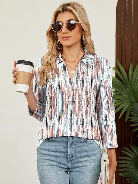 High-Grade Women's Sleeve V-Neck Collared Blouse Professional Loose Fit Premium Office Shirt OEM Customization Available