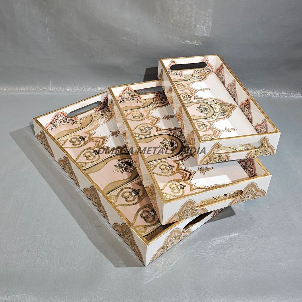 Ensemble de plateau de service en bois de haute qualité avec un design complexe d'accents d'or élégants pour les repas de luxe et les cadeaux de fête