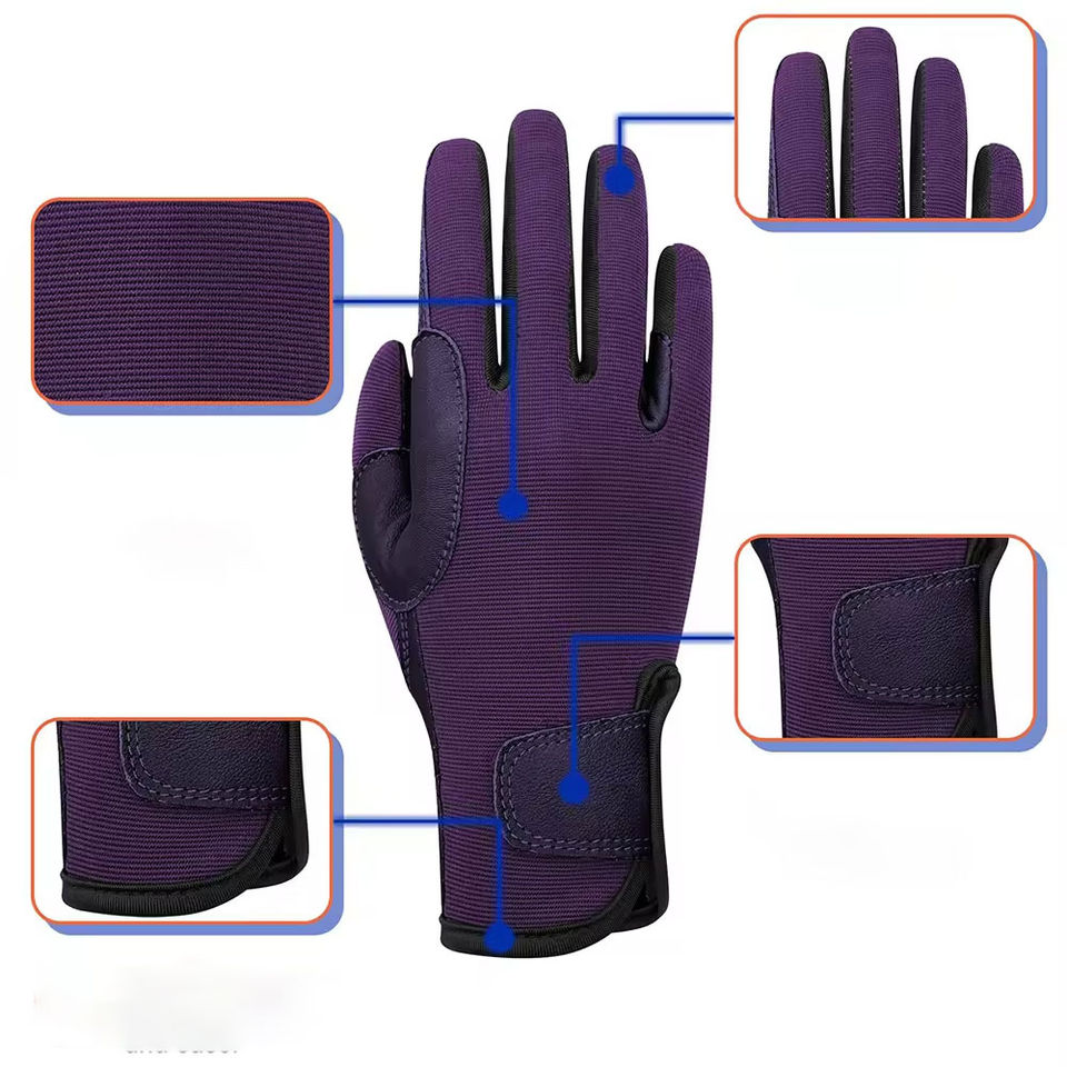 Gants d'équitation d'hiver imperméables à haute adhérence avec manchette élastique en cuir, dos en maille respirante pour une utilisation en extérieur