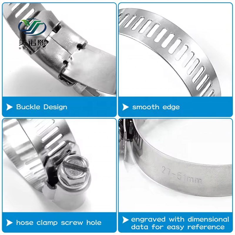 Collier de serrage résistant à la chaleur élevée Collier de serrage de type américain Engrenage à vis sans fin Collier de serrage de type américain