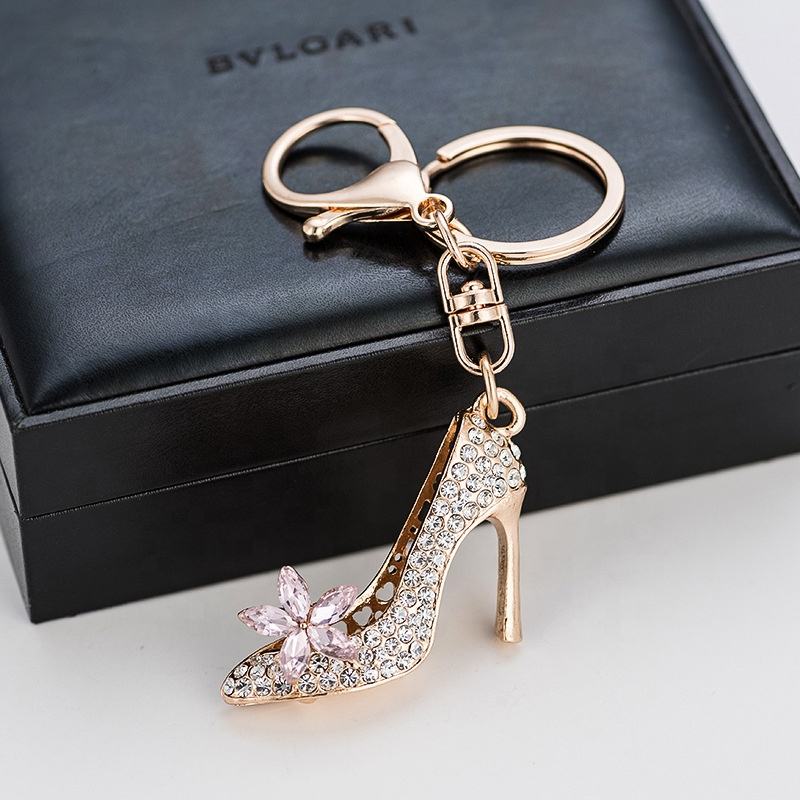Porte-clés chaussures à talons hauts, pour sac à main, mignon, en alliage décoratif, avec strass en cristal, pour voiture, tendance,