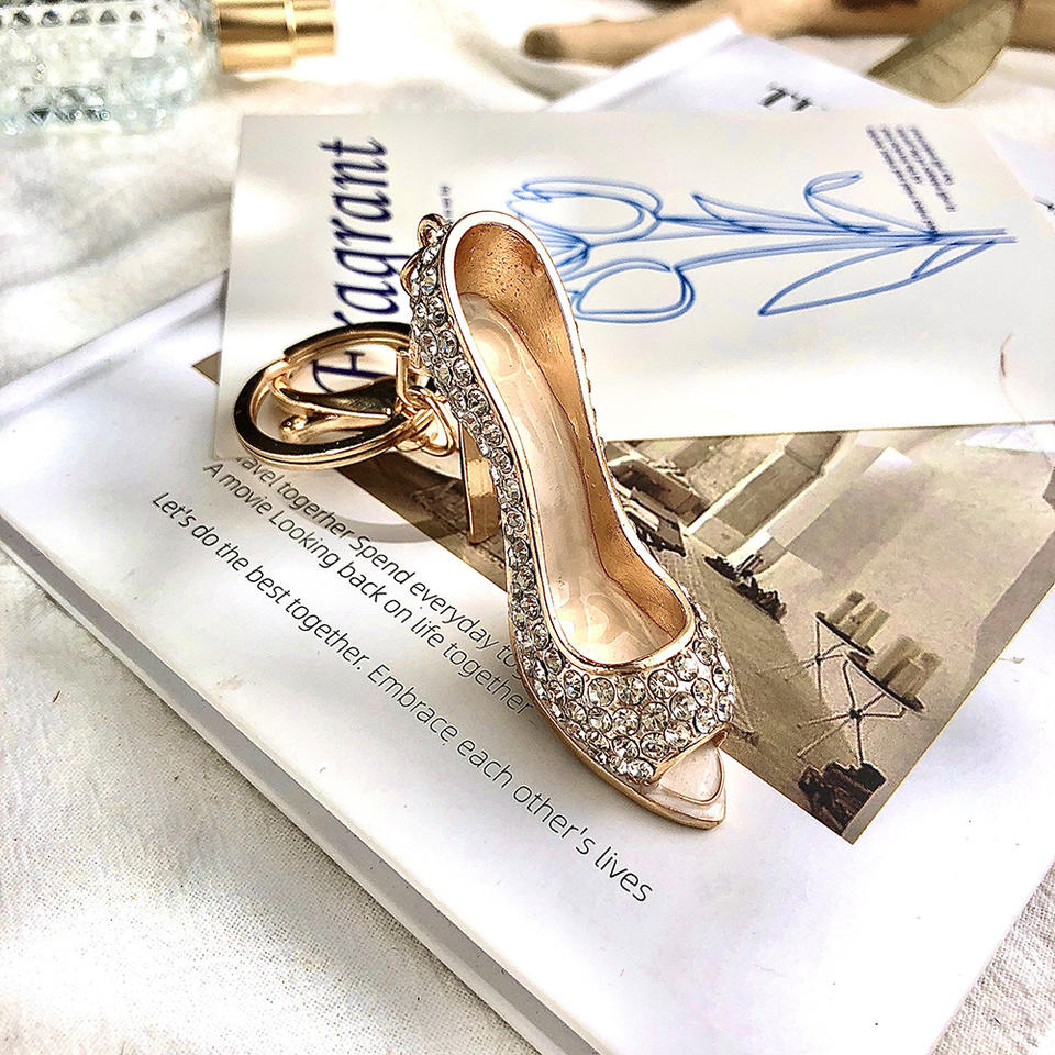 Porte-clés strass 3D personnalisé en acier inoxydable à talons hauts pour femmes sacs cadeau d'anniversaire