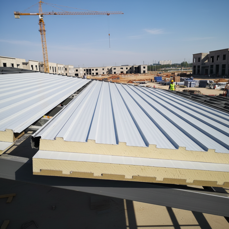 Panneau sandwich en PU à haute tolérance à l'humidité pour toiture, marché aux fleurs, salle d'enchères, surface facile à nettoyer