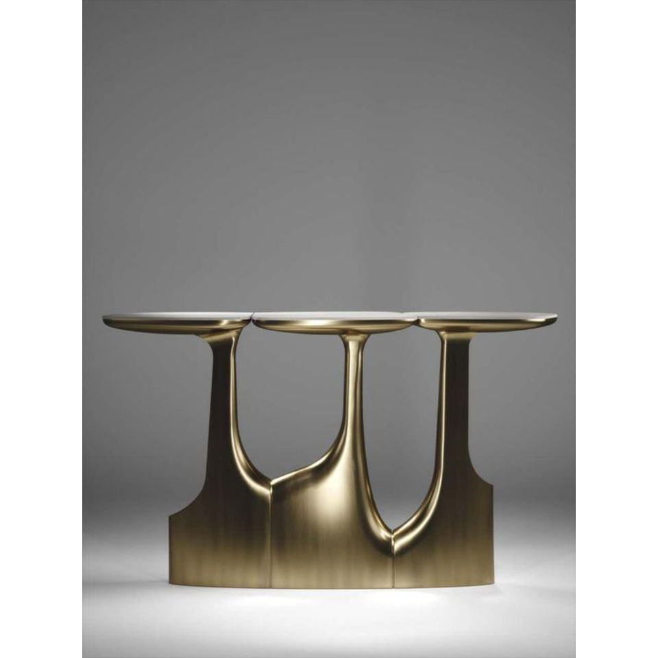 Tables consoles de luxe pour la maison et l'hôtel, en métal plaqué or de qualité supérieure, au design unique et élégant, très demandées, à prix bas.