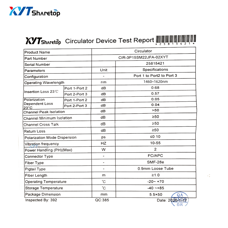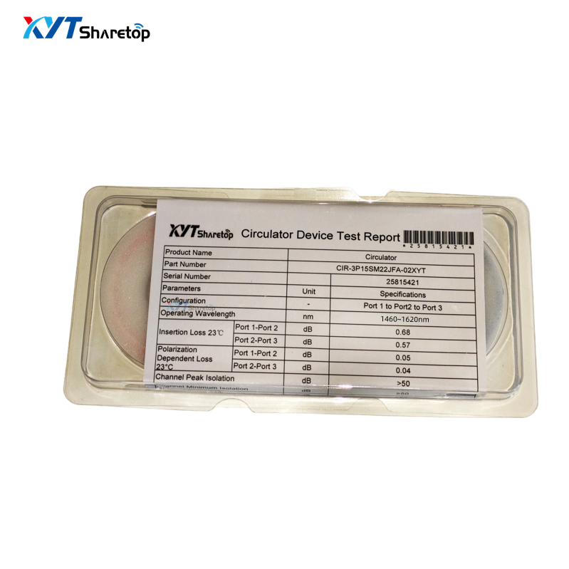Circulateur à fibre optique monomode à trois ports à isolation élevée, bande S+L+C 1460~1620nm, vente directe usine, personnalisable