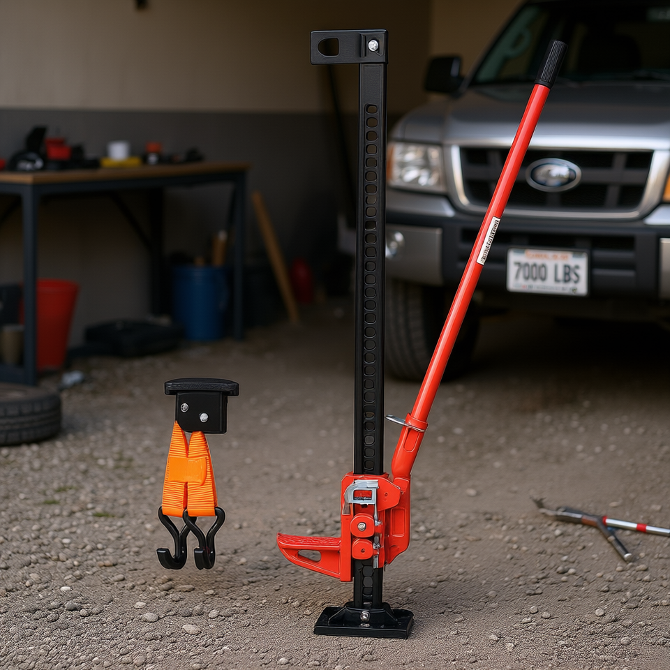 Cric de levage haute capacité 60 pouces pour ferme, capacité 7000 lb, cric à cliquet pour camion, SUV, levage de pare-chocs, usage intensif, couleur rouge
