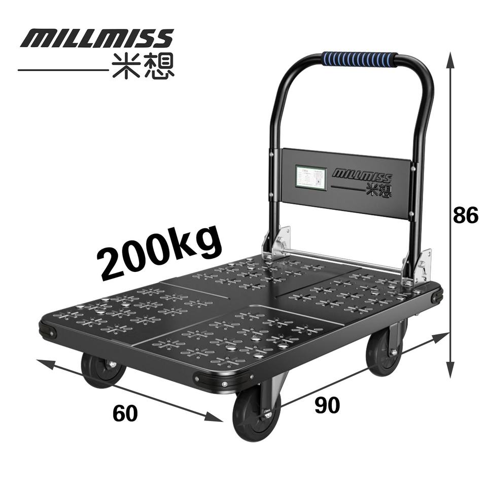 Chariot industriel pliable en acier à haute capacité de charge (800 kg), chariot à main renforcé avec plaque de base pour le chargement