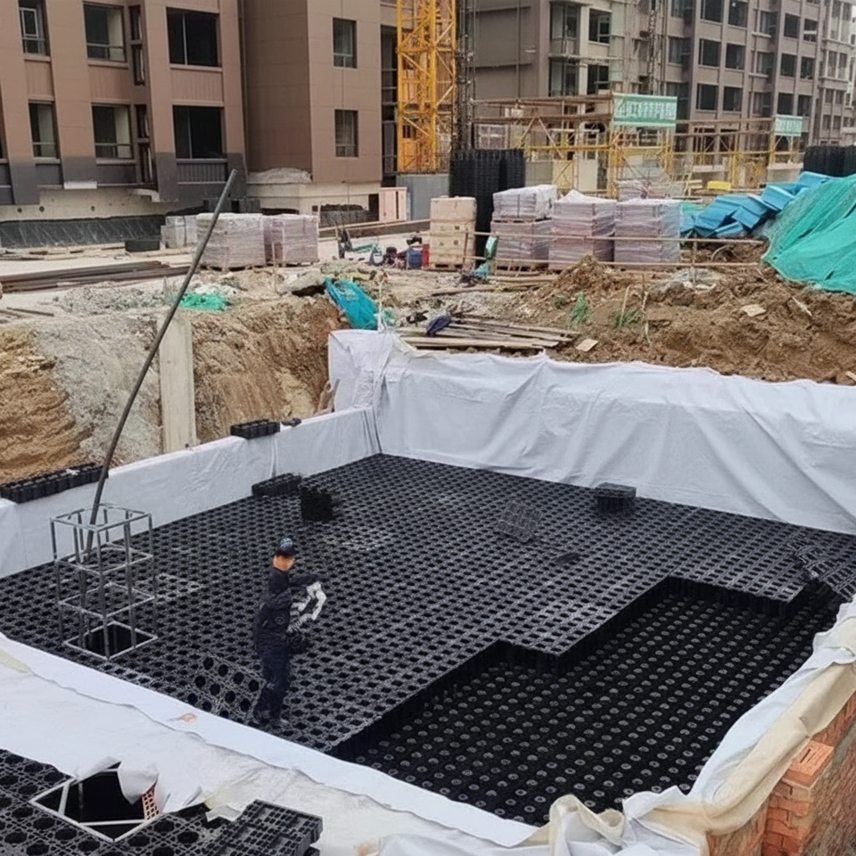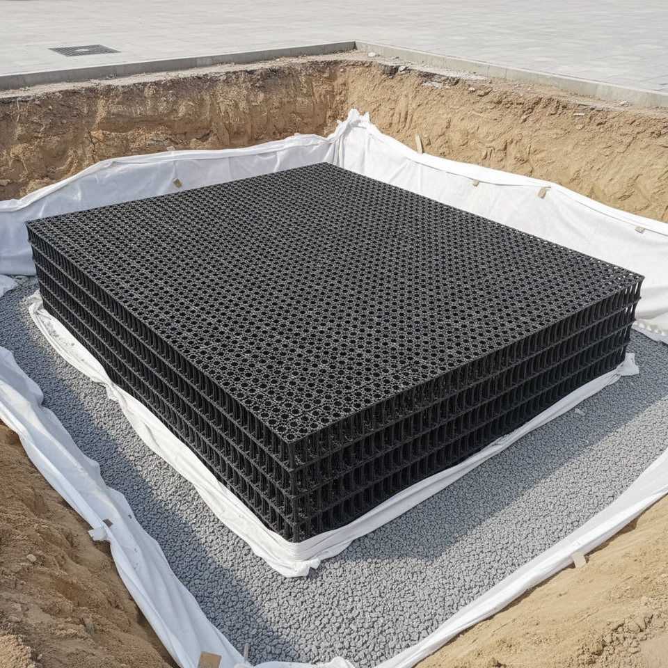 Module de bassin de drainage des eaux pluviales géocellulaire emboîtable à haute résistance de charge pour jardin domestique, route résidentielle, allée à usage intensif