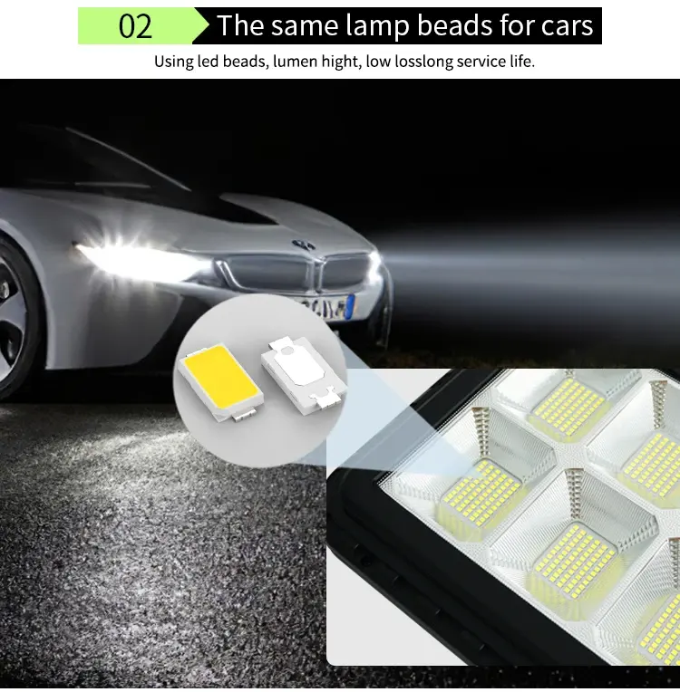 Lampe solaire LED tout-en-un haute luminosité 300W, étanche avec ampoule à cellule solaire 270, indice de protection IP65, applications extérieures carrées