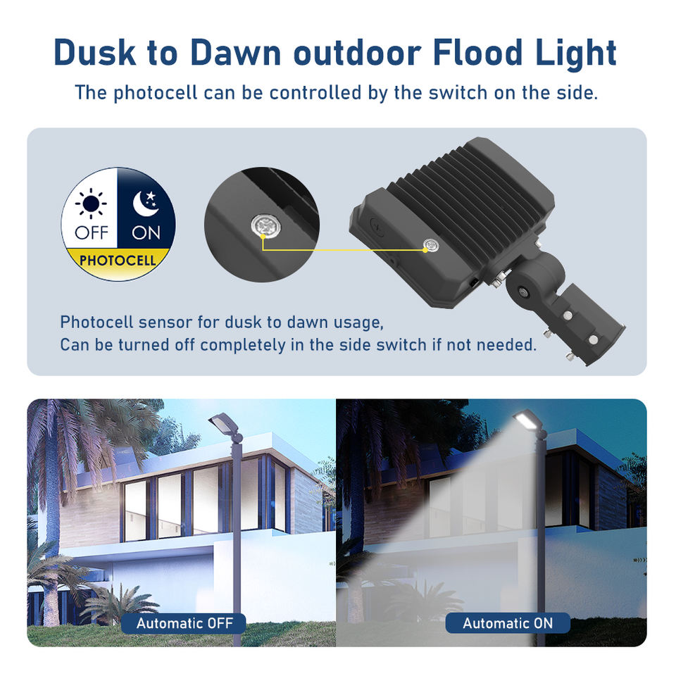 Projecteur LED résidentiel en aluminium haute luminosité IP65 135LM/W 100W/120W/150W avec cellule photoélectrique pour éclairage de stade, parking et façade