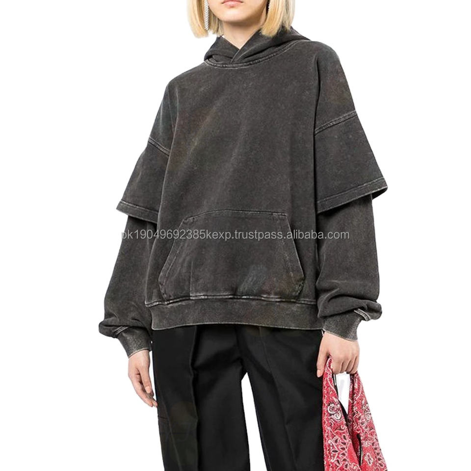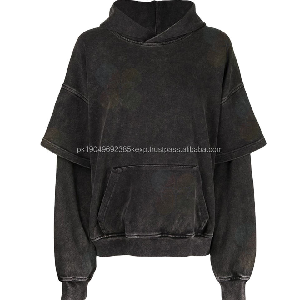 Pull à capuche unisexe de luxe, double couche, design à manches, 450 g/m², tissu éponge français, style streetwear, épaules tombantes, pour hommes et femmes