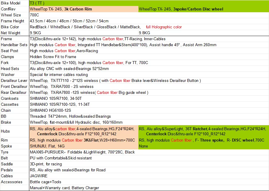 Cassettes:SHIMANO 105/R7100-12S, 11-34T