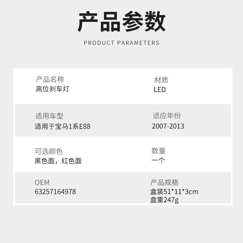Feu Stop Central LED Rouge Noir pour BMW Série 1 E88 2007-2013 OEM 63257164978