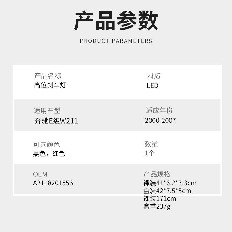 Feu Stop Supérieur pour Mercedes-Benz Classe E W211 2003-2006, Feu Arrière Rouge, Lampe de Sécurité Automobile