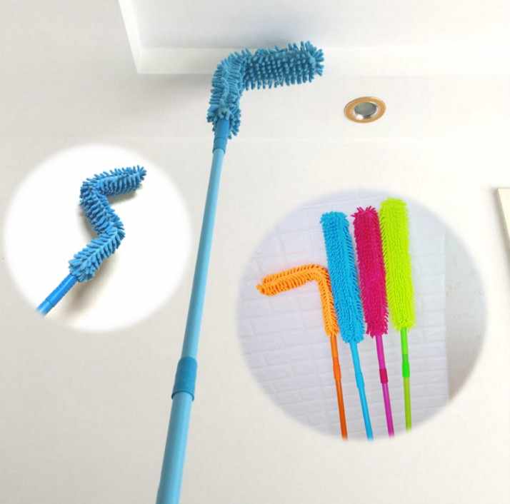 Plumeau rétractable multifonctionnel à long manche avec bâton de fer télescopique Outil de dépoussiérage pliable longue durée