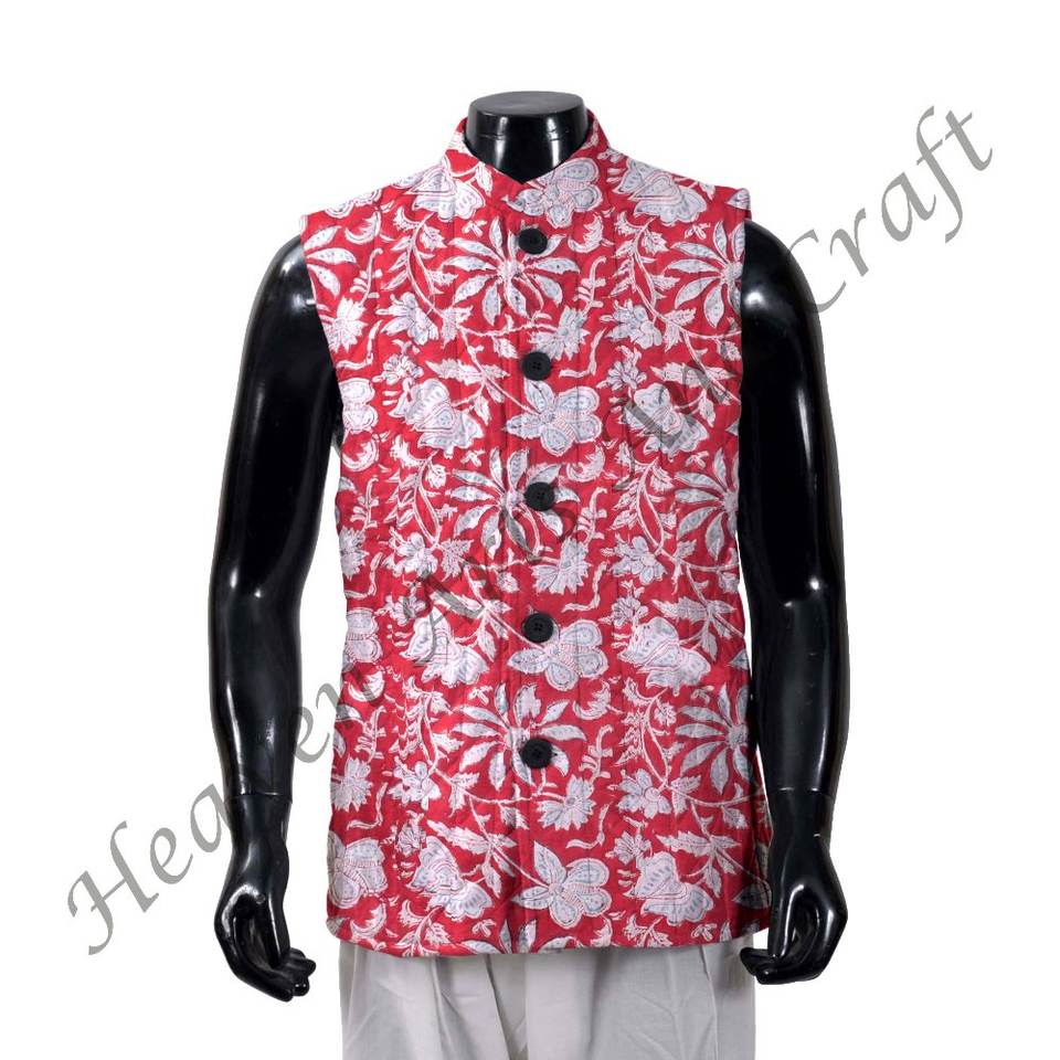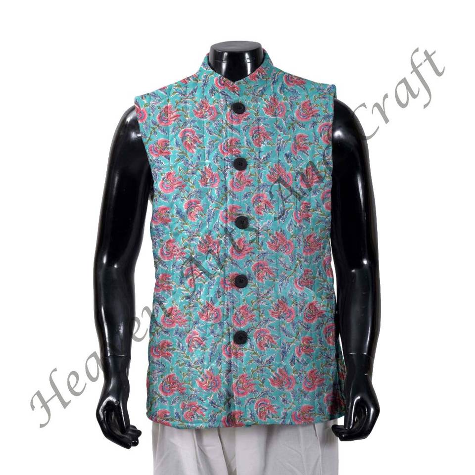 Haut Oem hommes bloc imprimé veste matelassé hiver manteau coton tissu main bloc imprimé bloc coton veste