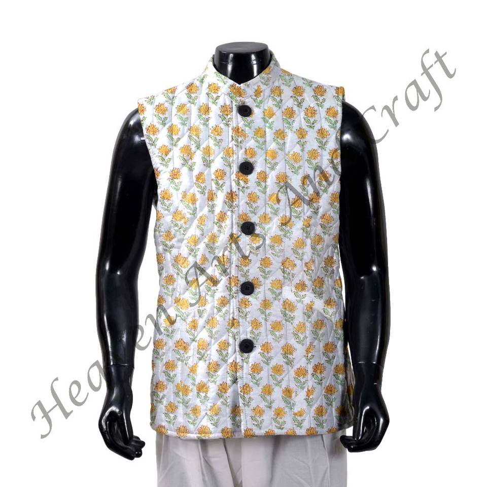 High Oem Men's Block Print Jacket Quilted Winter Coat Cotton Fabric Hand Block Printed Block Print Cotton Jacket