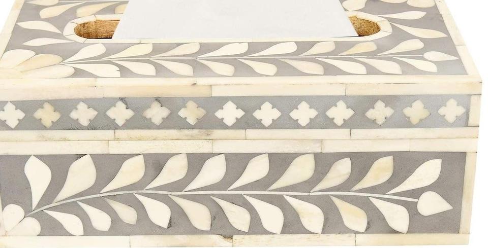 Boîte à mouchoirs en incrustation d'os à la demande avec motif floral pour accessoires de table de salle de bain de chambre à coucher