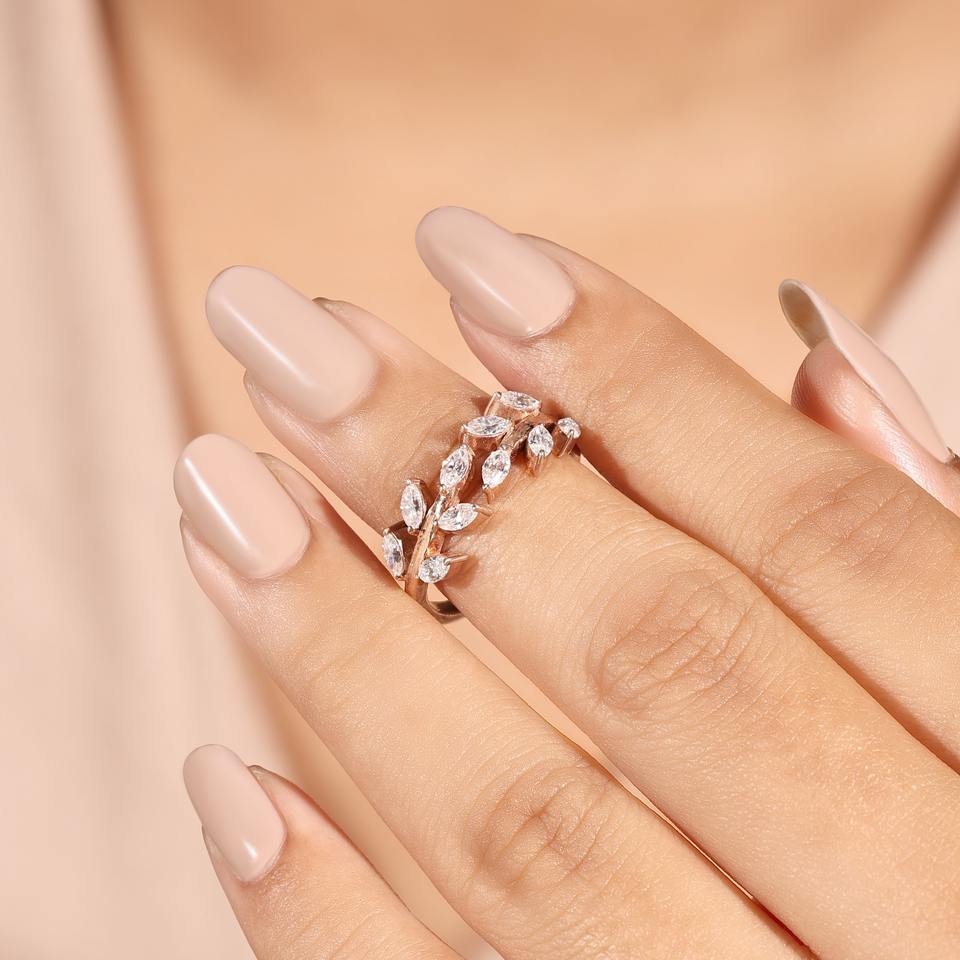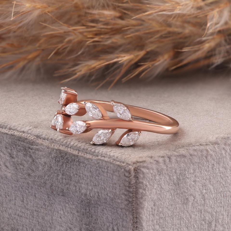 Bague en or rose à la mode pour femme, très demandée, en forme de feuille, sertie de diamants taille marquise, style nature, pour mariage et fiançailles