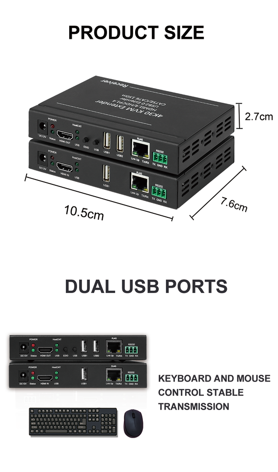 Utilisation:HDMI, KVM, extension de signal RS232