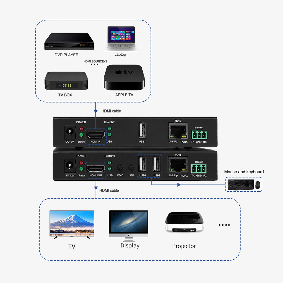 HDMI, KVM, extension de signal RS232