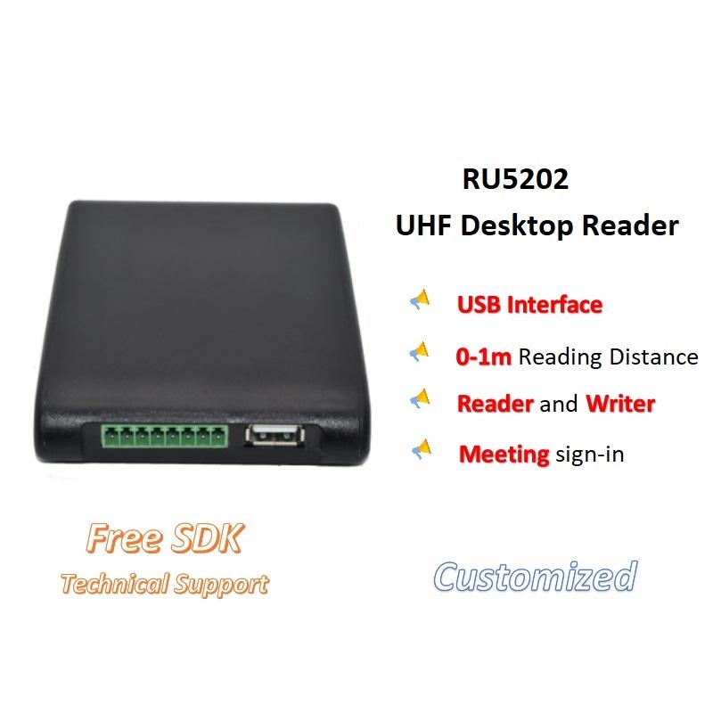 Lecteur/écrivain RFID UHF de bureau haute performance 860-960 MHz ISO 18000-6C, longue portée 0-2 m, prend en charge la lecture/écriture, ABS durable, Windows