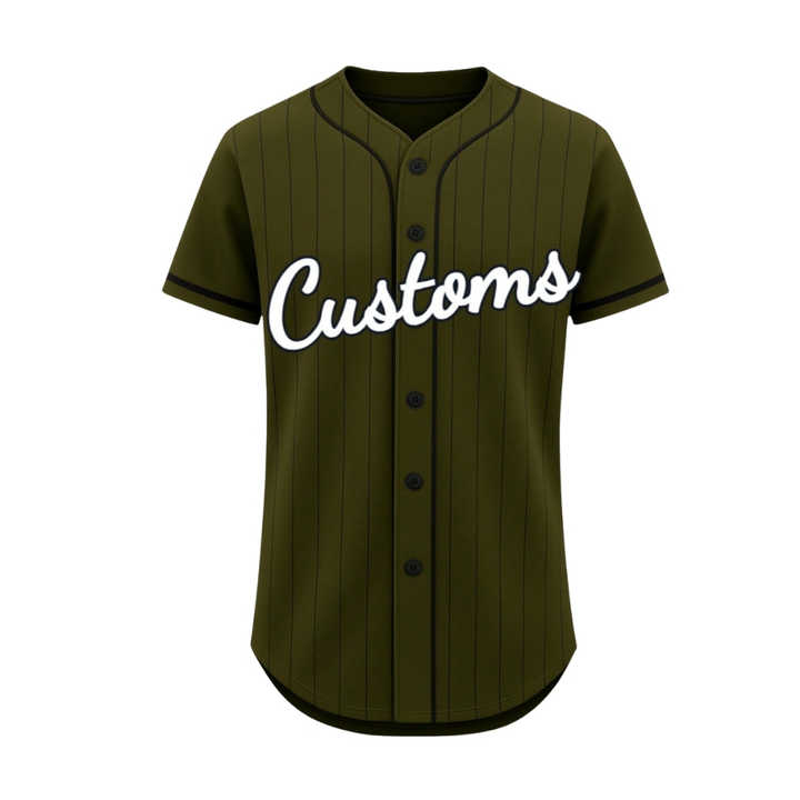 Uniforme de baseball personnalisé OEM à col en V, tissu polyester extensible respirant, jersey à rayures entièrement boutonné, logo d'équipe personnalisé
