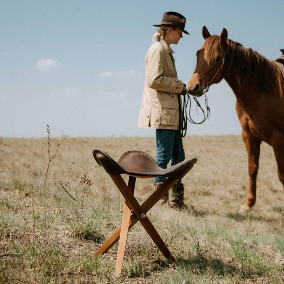 Tabouret pliant en cuir de vachette haute performance avec pieds en bois de qualité supérieure, chaise de chasse, support de lampe pour camping et pêche en extérieur