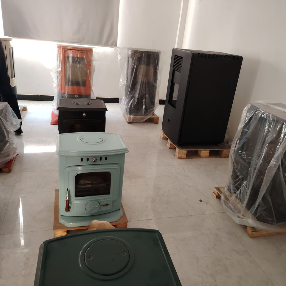 Poêle à bois contemporain autoportant en fonte écologique haute performance pour villa et salon, garantie 1 an