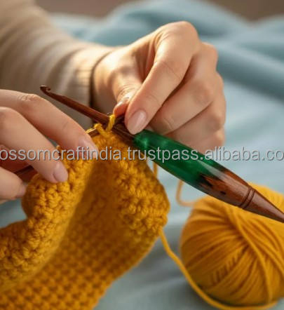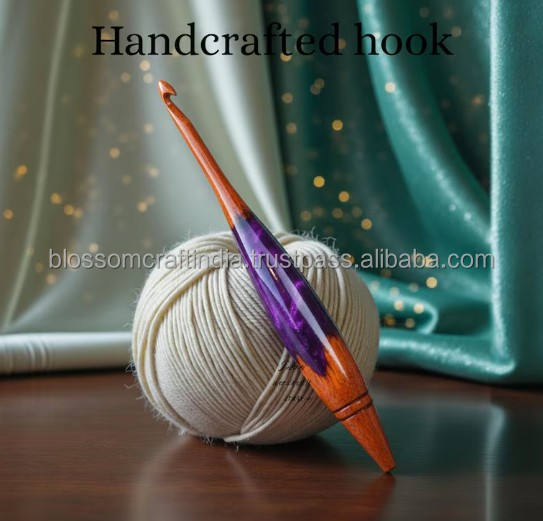 Crochet en résine époxy haute performance avec manche en bois, conçu pour un glissement facile du fil et des points de crochet fluides