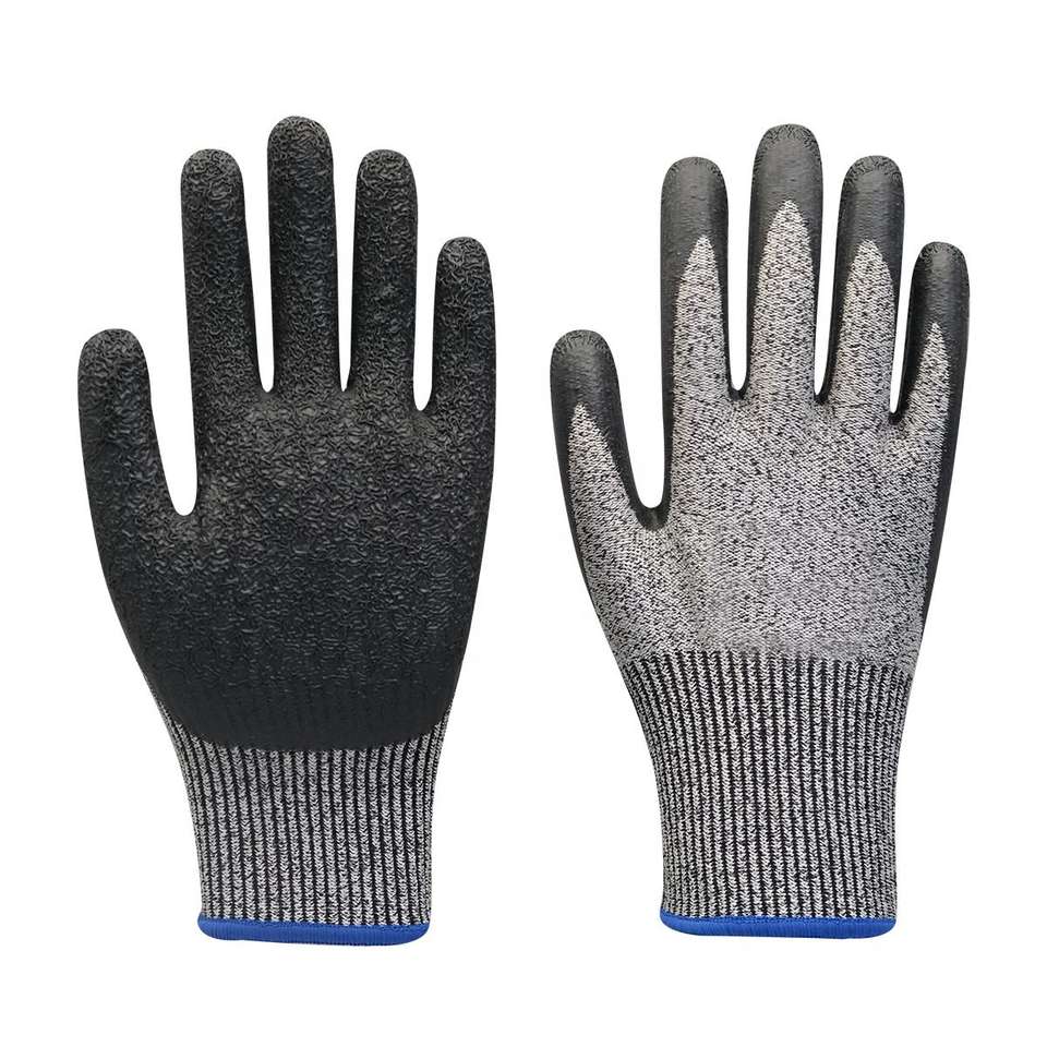 Gants de sécurité haute performance HPPE enduits de NBR sablé, anti-coupure EN388 Niveau D-E, ANSI A3-A4, pour travaux industriels sur métal et verre