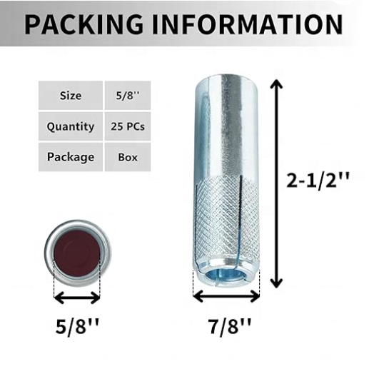 1/2" x 2, 1/4'' 5/16'' 3/8'' 1/2'' 5/8''