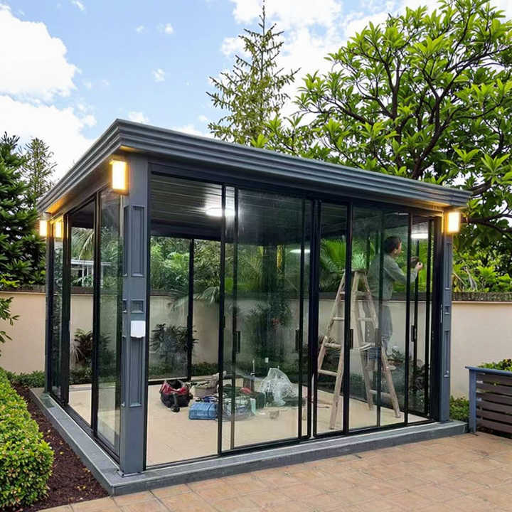 Salle à persiennes motorisées pour véranda en verre isolé haute performance pour véranda toutes saisons Europe