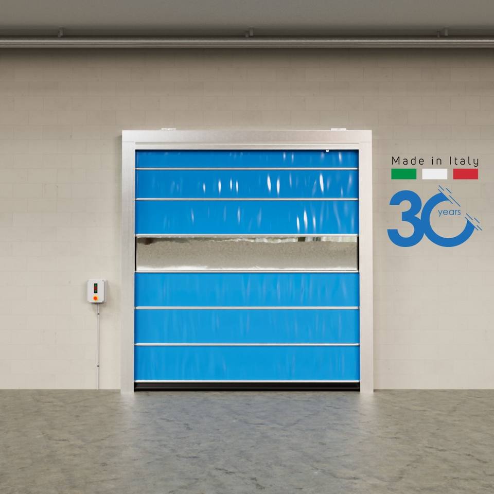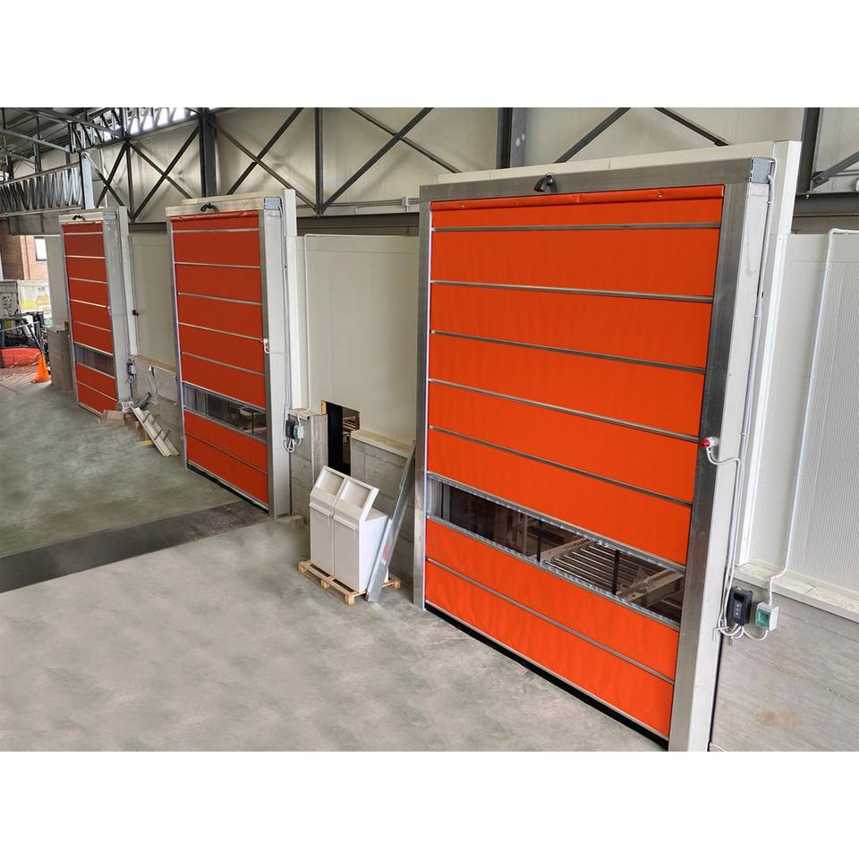 Porte pliante ALU.PACK en aluminium et PVC pour entrepôt, résistante au vent, installation facile, faible entretien