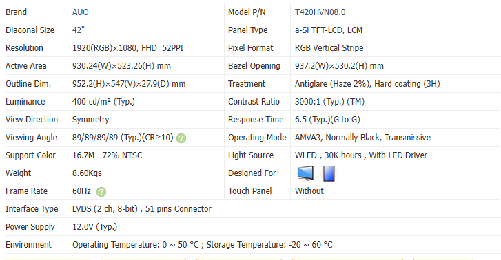 42 poucesTaille de l'écran