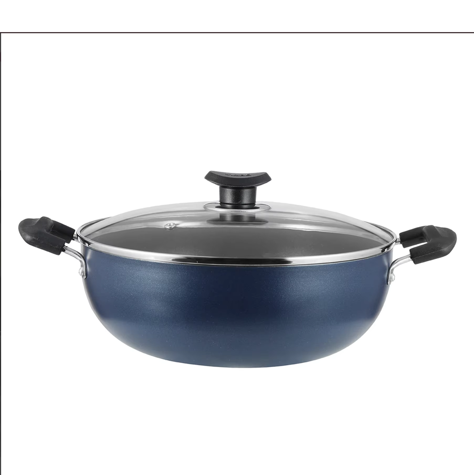 Ensemble de casseroles Kadai polyvalentes haute performance antiadhésives avec couvercle en verre transparent, base en aluminium robuste, compatibles gaz et induction