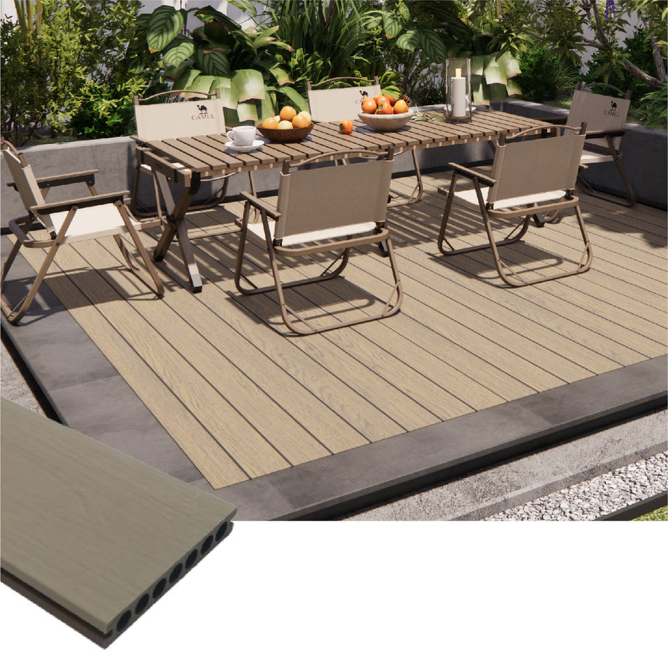 Revêtement de sol extérieur WPC haute performance 140*2900mm de longueur, imperméable et résistant aux UV, idéal pour les terrasses, les patios et les allées