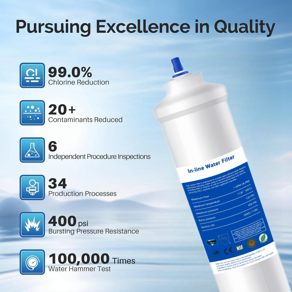 Cartouche de Filtre à Eau Haute Performance 5 Microns, Charbon Actif T33, Cartouche Filtrante en Ligne PP de Haute Qualité