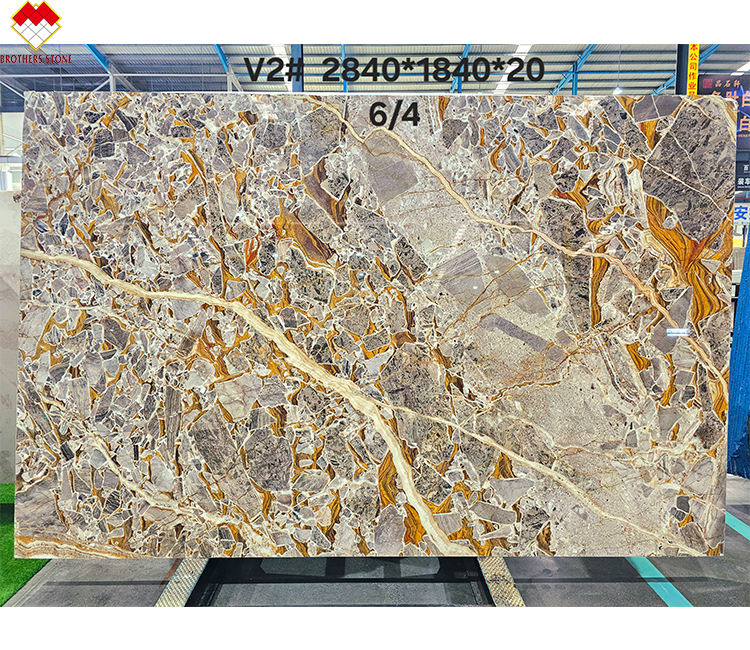 Dalle de marbre doré Bugatti polie haute décoration murale de fond doré étincelant marbre doré de Calcutta pour comptoir et table d'île