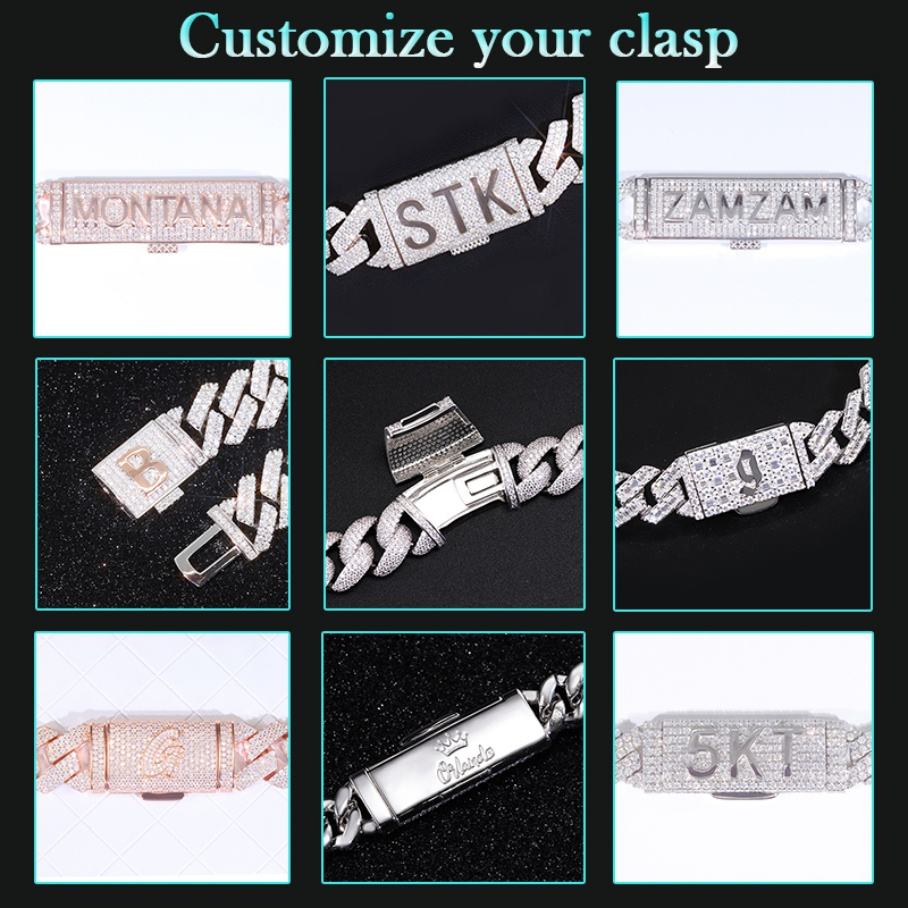 Chaîne cubaine Miami hautement polie en argent 925, chaîne unie plaquée or 18 carats, chaîne cubaine avec fermoir en moissanite personnalisé, collier de bijoux