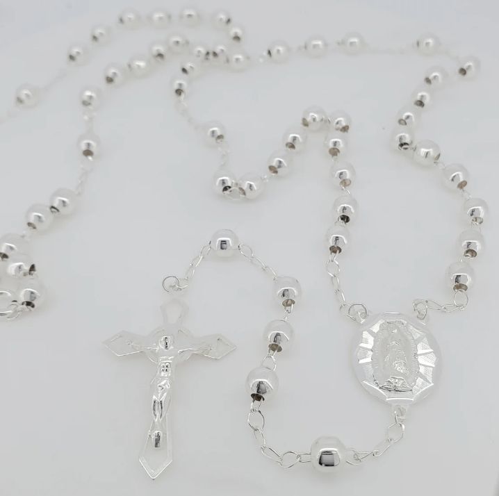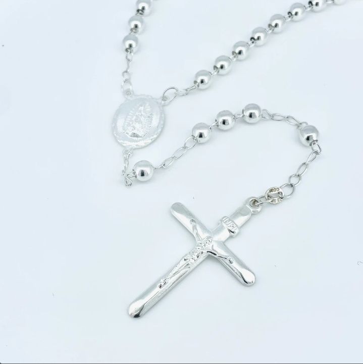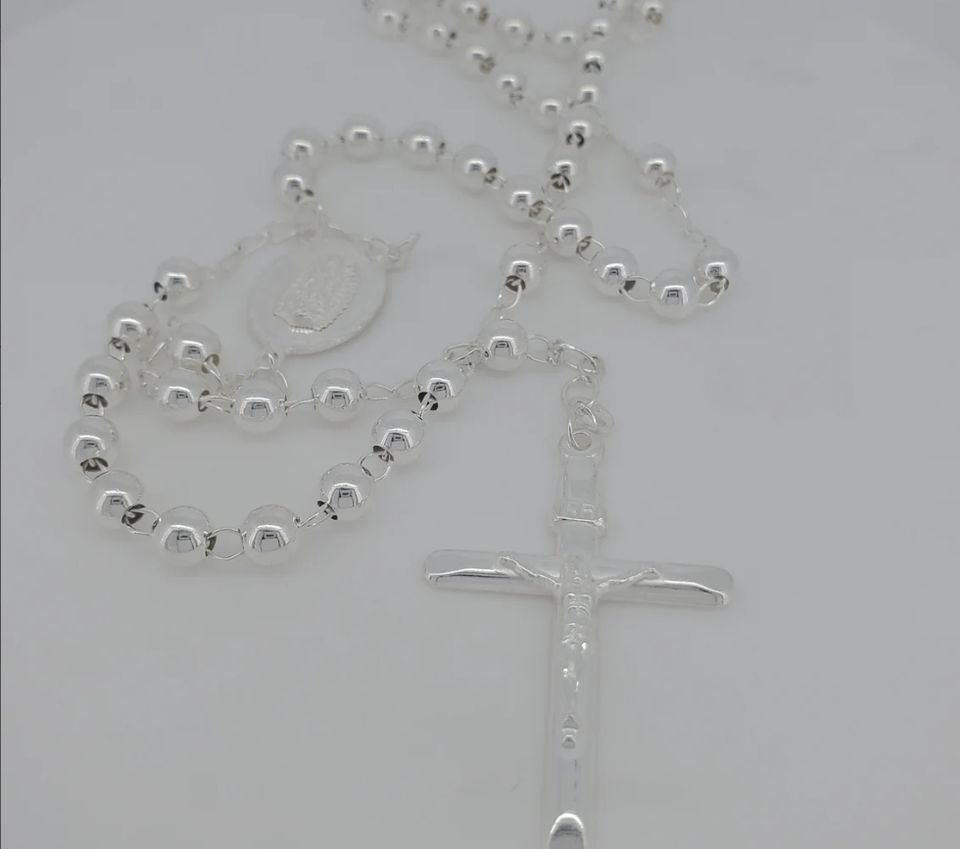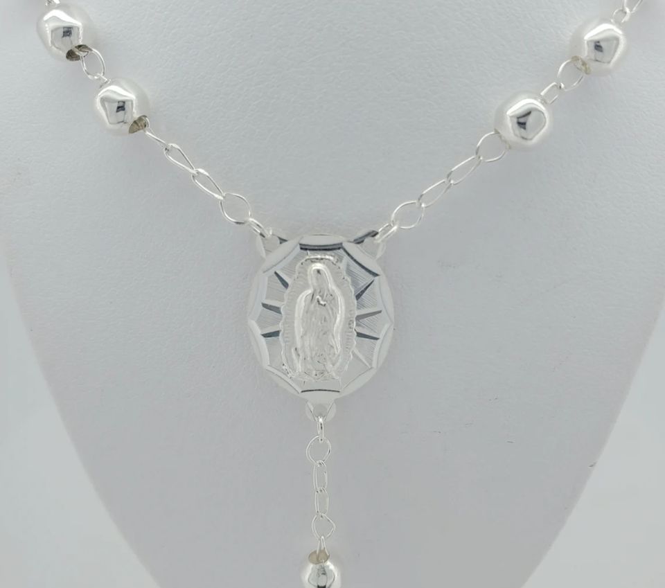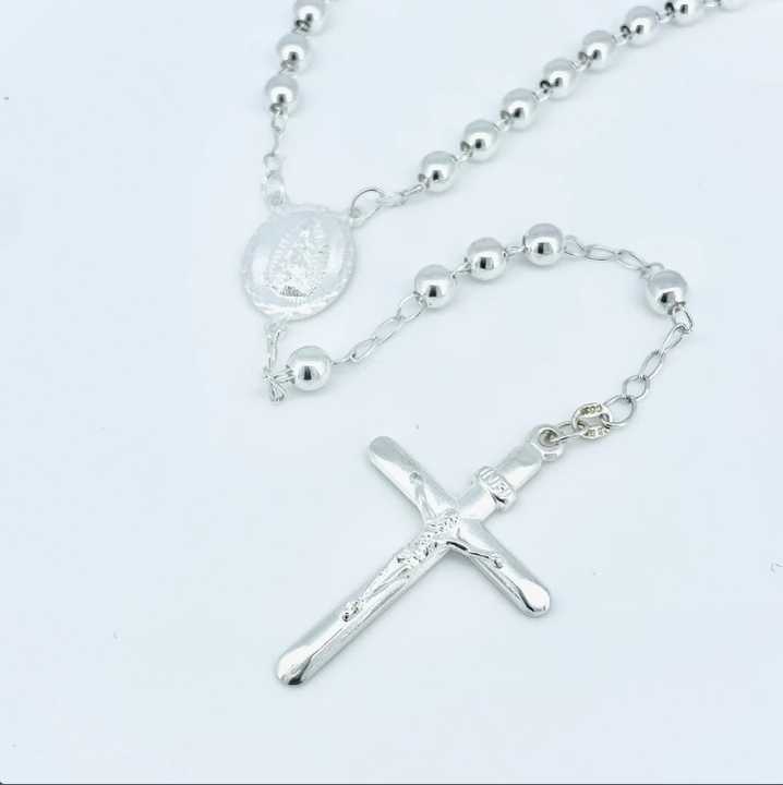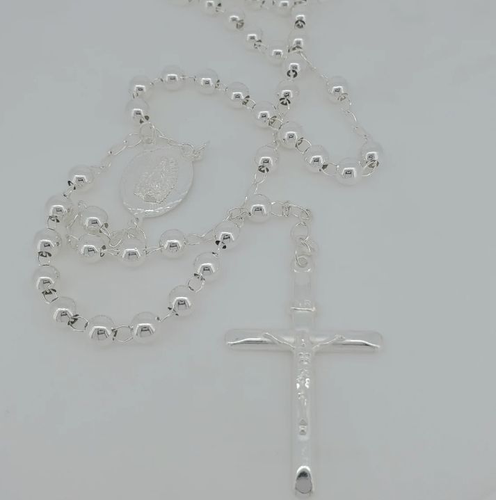 High Polished Solid Genuine Silver Plated Religious,Heavy Catholic Rosary Necklace Tranish Free Jewelry, Rosary Bead Ball Chain