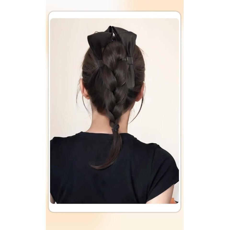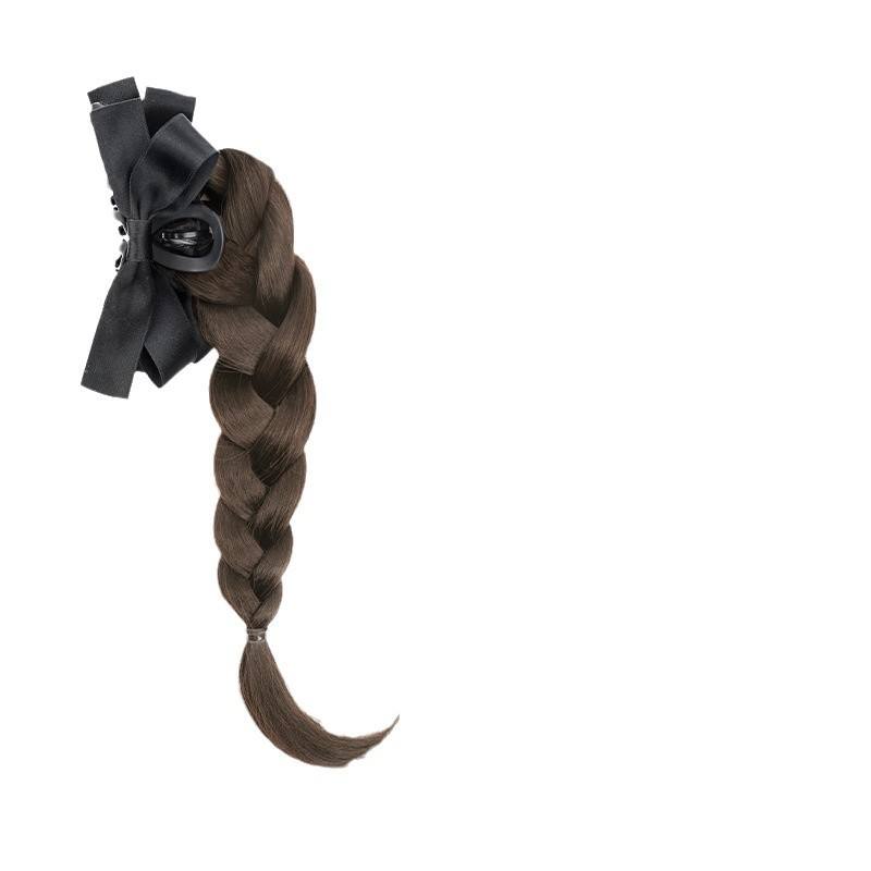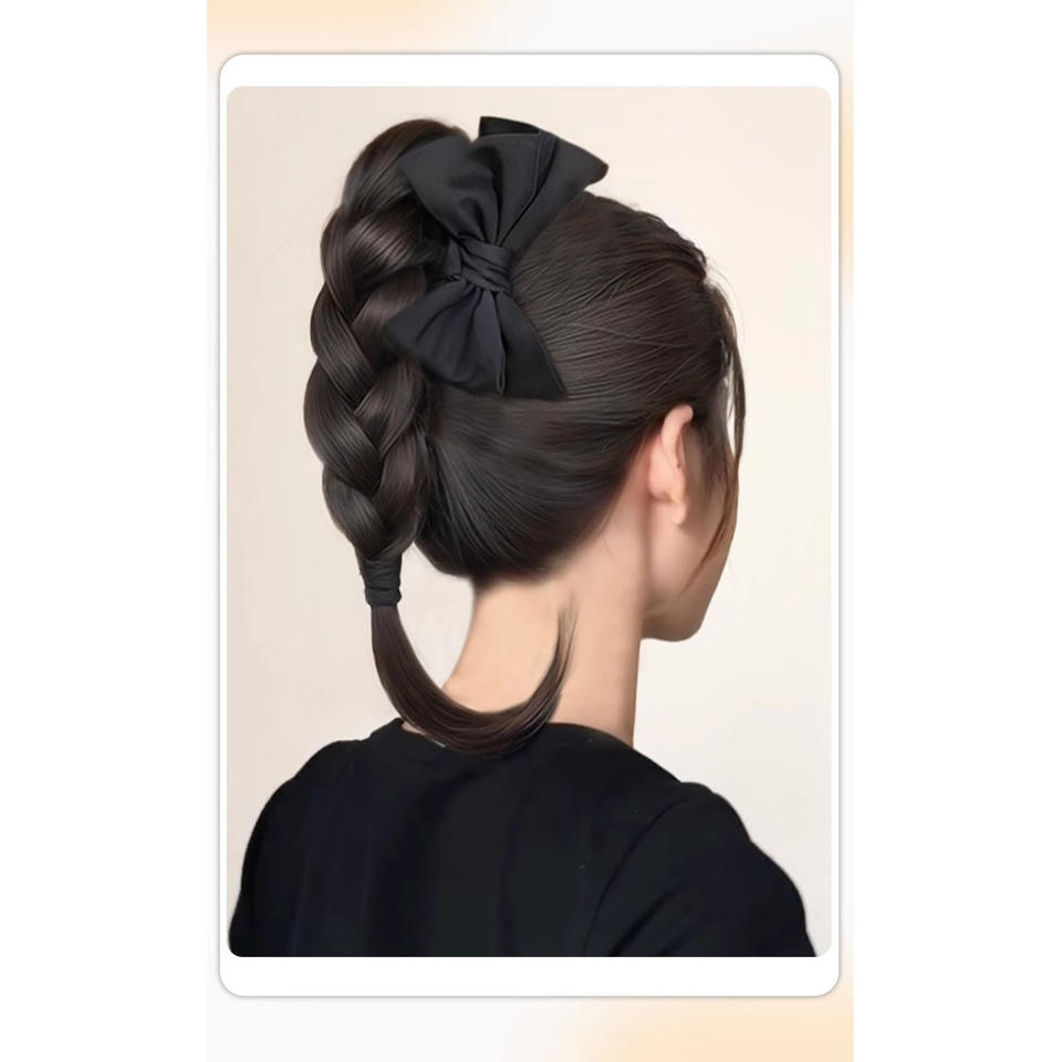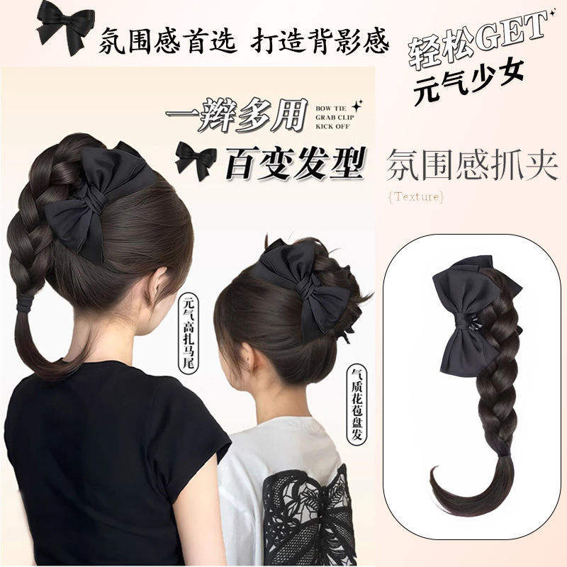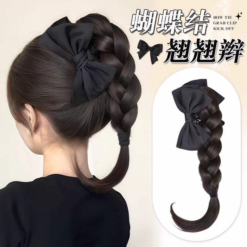 Perruque tressée avec pince à cheveux et nœud, style chinois moderne simulé, queue de cheval haute, demi-attachée, naturelle, volumineuse et éclatante