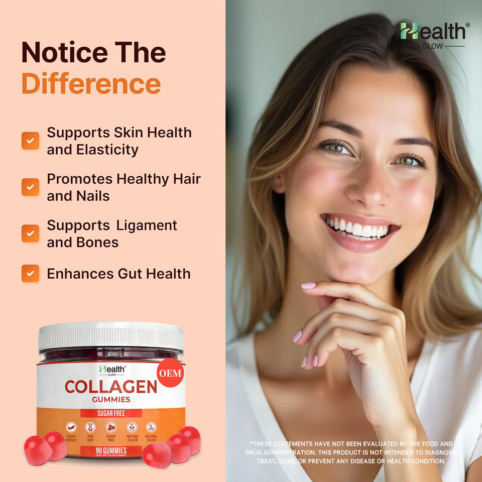 Gommes à la Biotine et au Collagène Haute Puissance 500mg Sans Sucre Pour Adultes, Peau Jeune Éclatante, Formule OEM Certifiée, Compléments Alimentaires