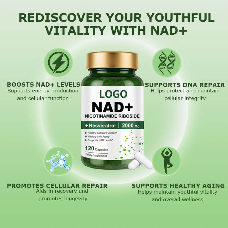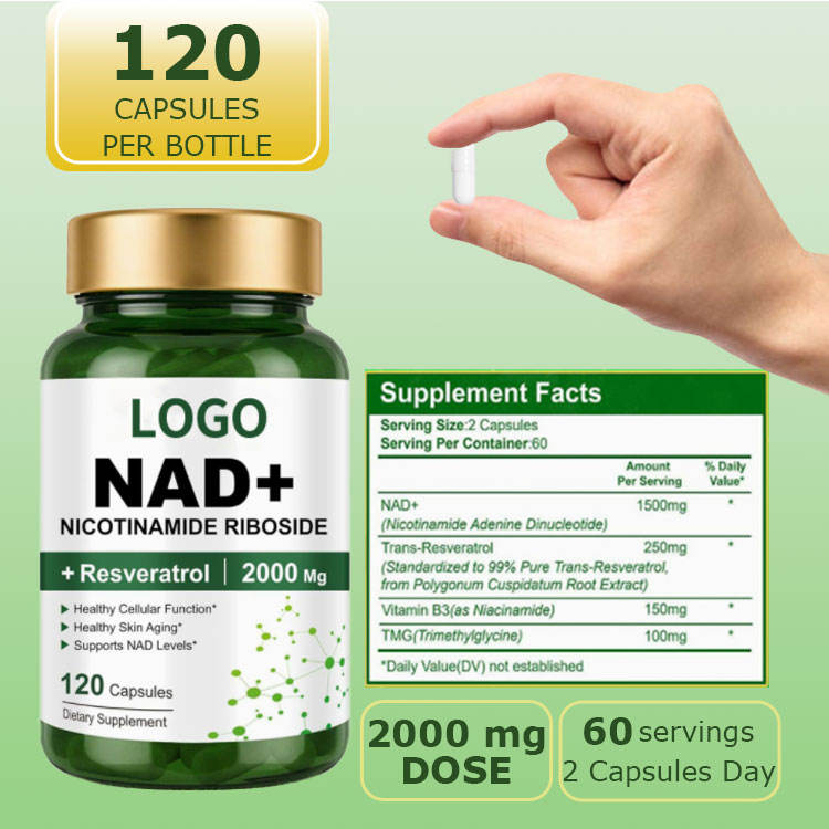 Ingrédient principal:Supplément de NAD+ 1500mg, Trans-Resvératrol (250 mg)