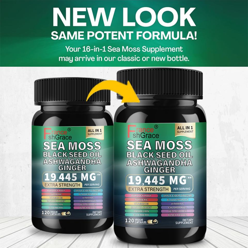 Complément de mousse marine haute puissance 19445 mg avec huile de nigelle pour adultes – Améliore l'immunité – Capsules de mousse marine