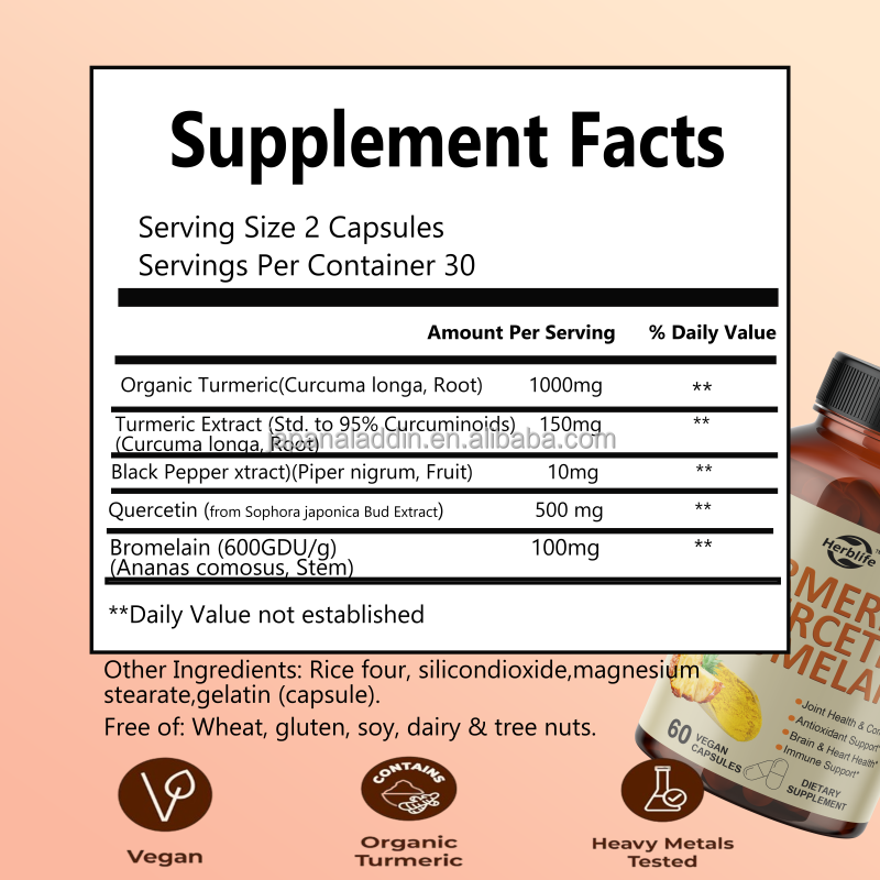 Product Name:High Potency Turmeric Quercetin Bromelain Capsules