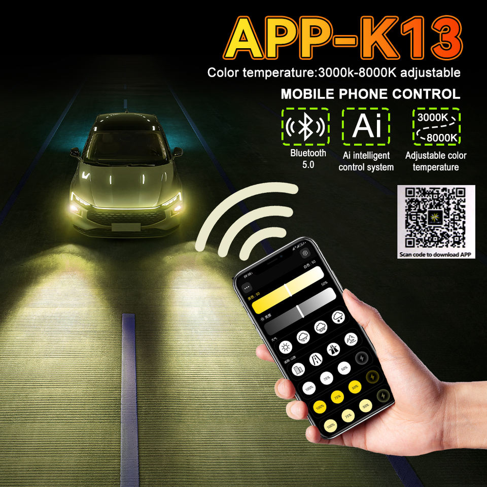 Ampoule LED de phare antibrouillard haute puissance 130W, contrôle par application, 12V, étanche, 6000K-6500K, 30000LM, ajustement universel, garantie 2 ans
