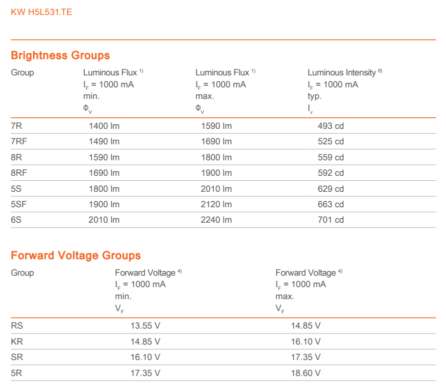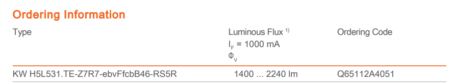 Flux lumineux @ 25 ℃ @ 1000mA:1400-2240lm